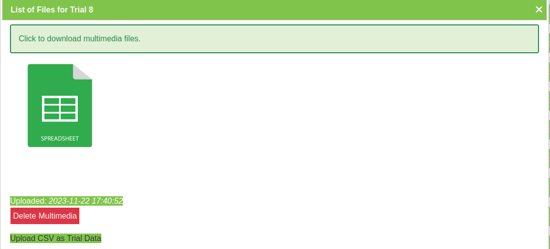 Trial data can be uploaded, viewed and downloaded in the Trial Data Tab.