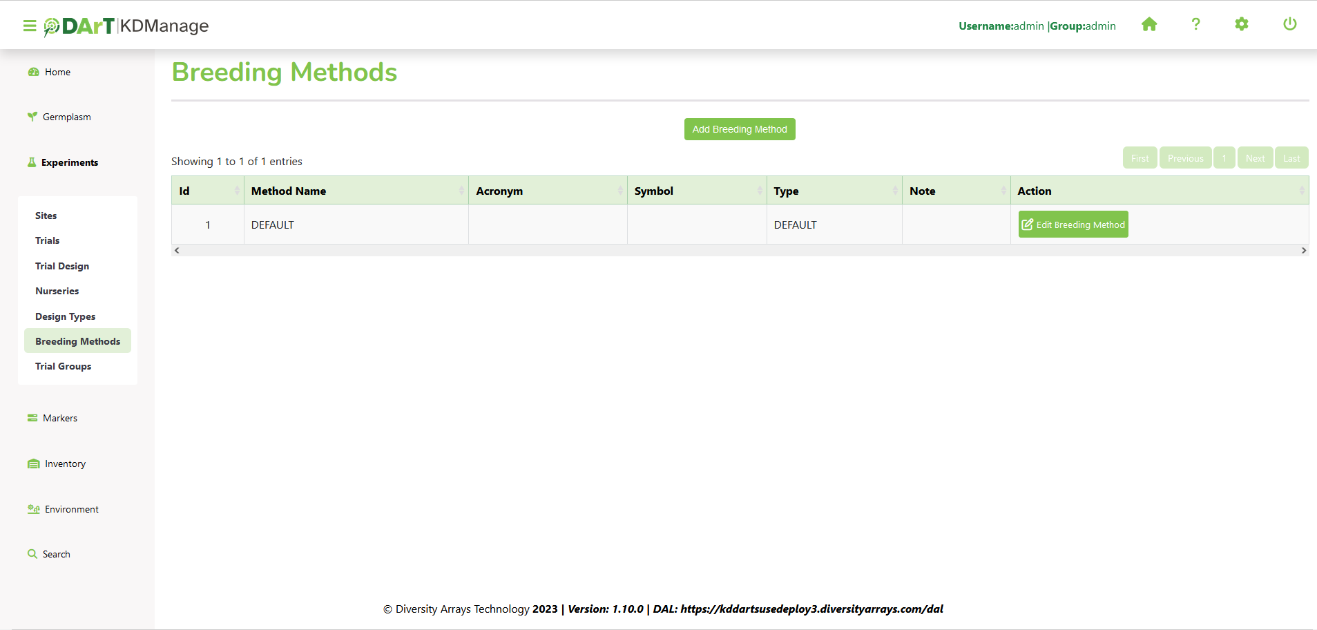 Where it is not important to specify a Breeding Method use the ‘Default’ Breeding Method.