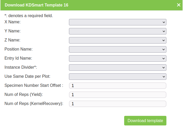 - Download CSV Template - produces a CSV file for importing into KDSmart without any of a trial trait’s results.