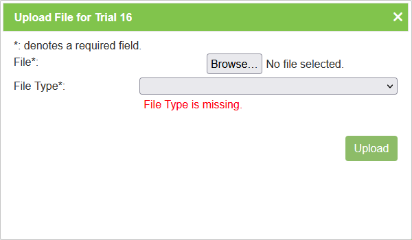 | Upload File | Uploads files to this trial. | View Trial |